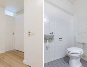 Separaat toilet, licht betegeld toilet met fontein.