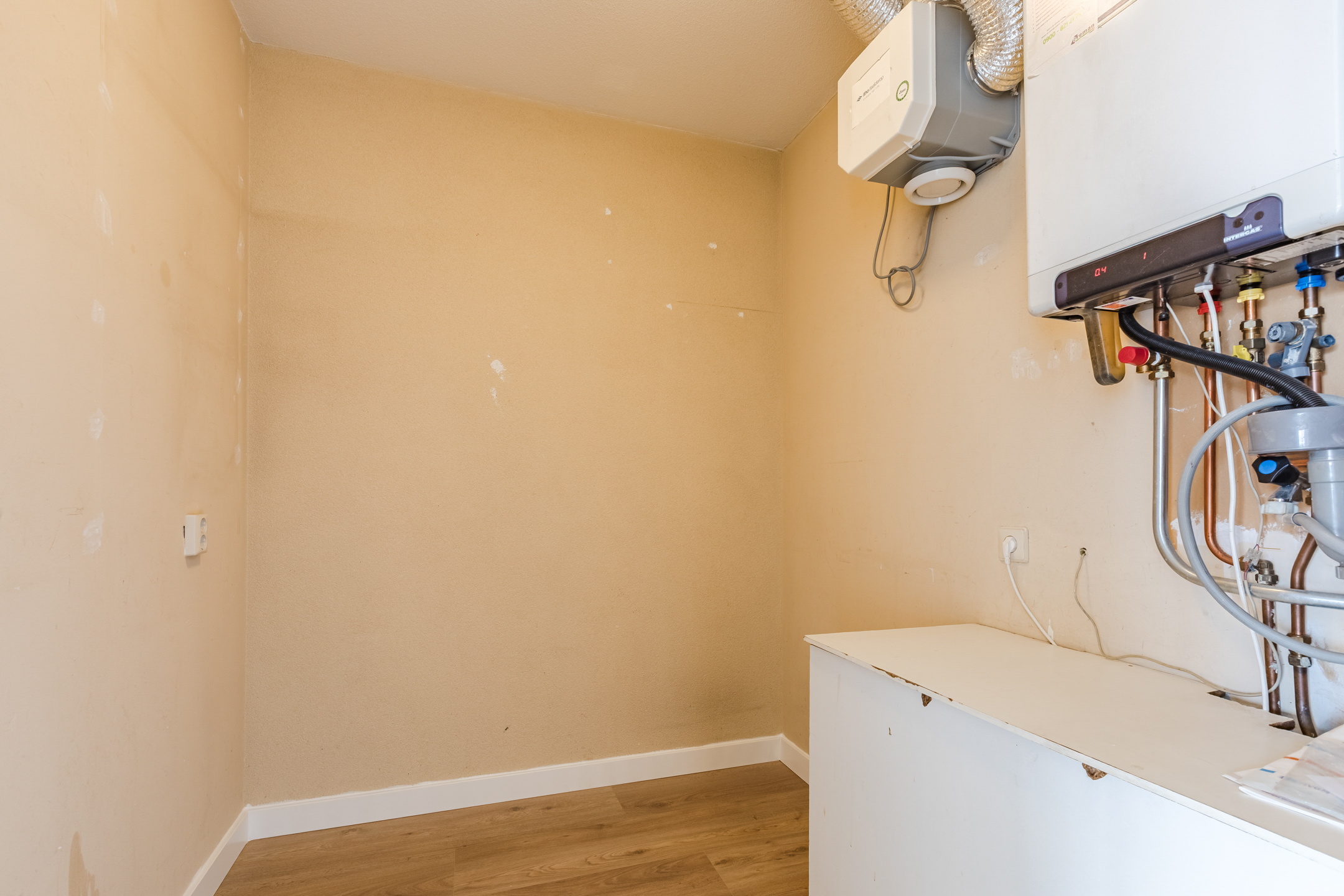 Inpandige berging/ bijkeuken met de c.v. combi ketel en de unit voor de mechanische ventilatie.