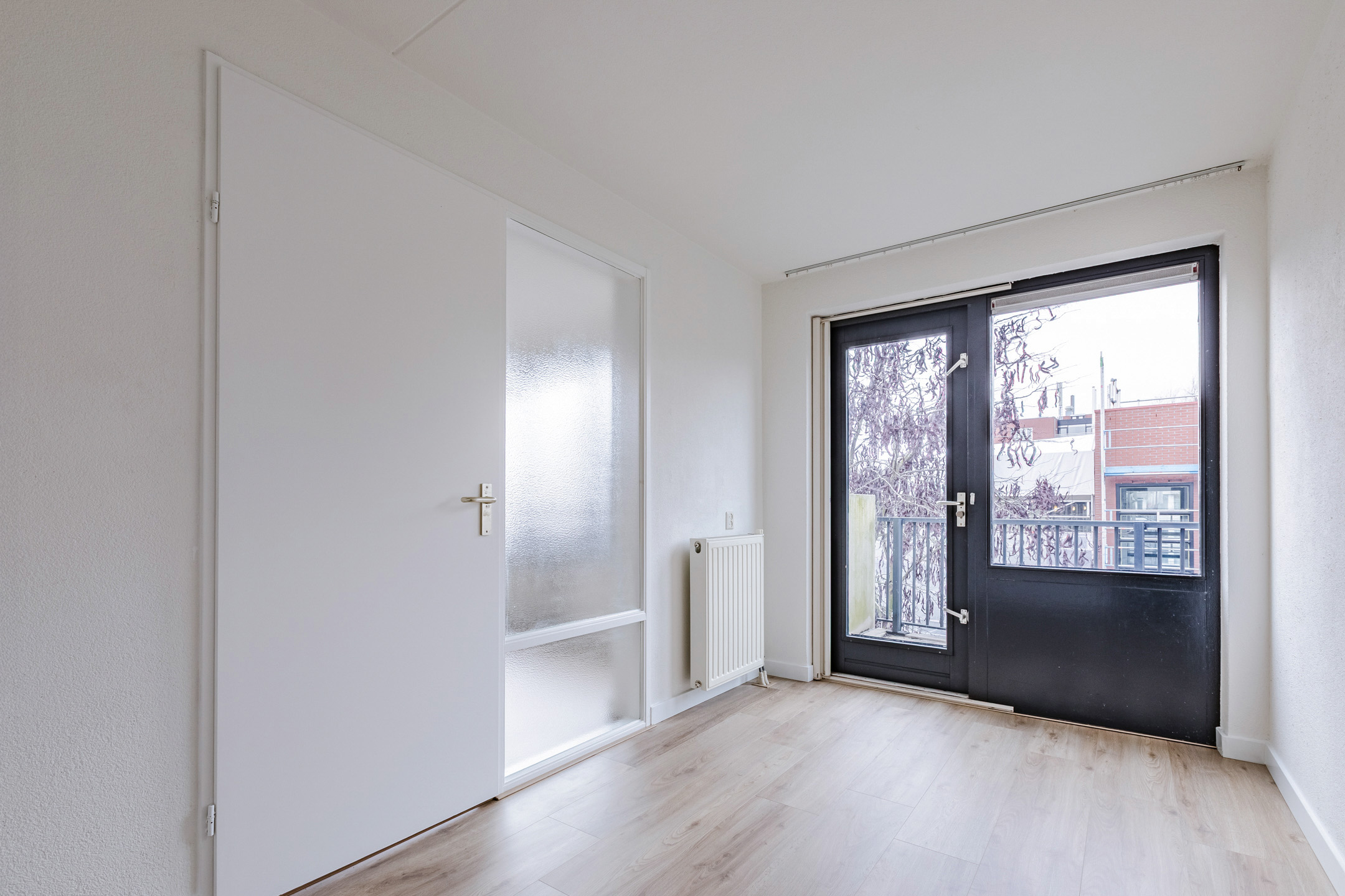 Slaapkamer circa 15 m² en een slaapkamer circa 9m². Beide slaapkamers zijn bieden een fraai zicht op de binnentuin. De kleine slaapkamer is tevens vanuit de woonkamer te bereiken en geeft toegang tot het balkon.