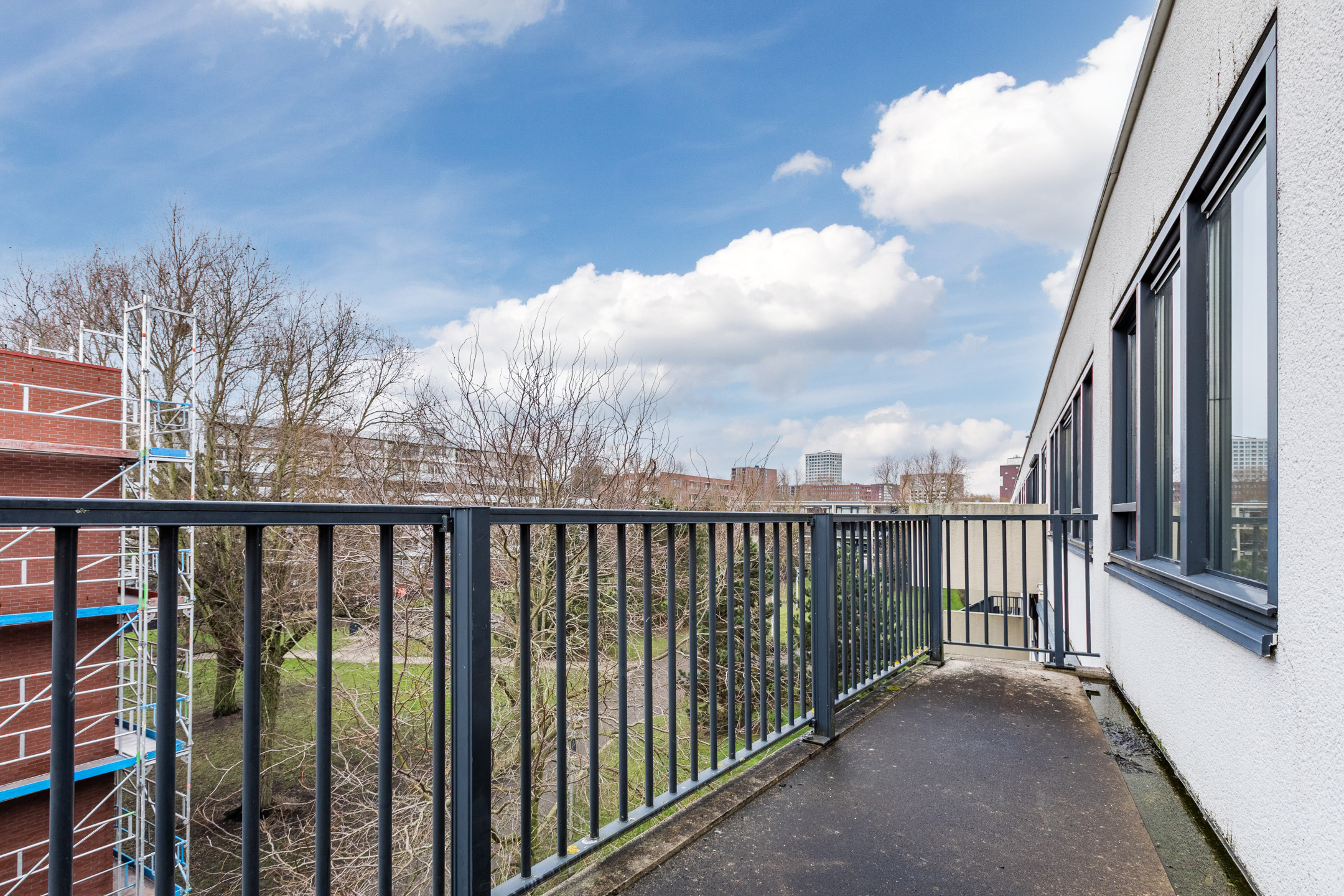 Ruim balkon circa 9 m² op het westen. Het balkon is aan de binnentuin gelegen.