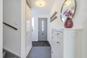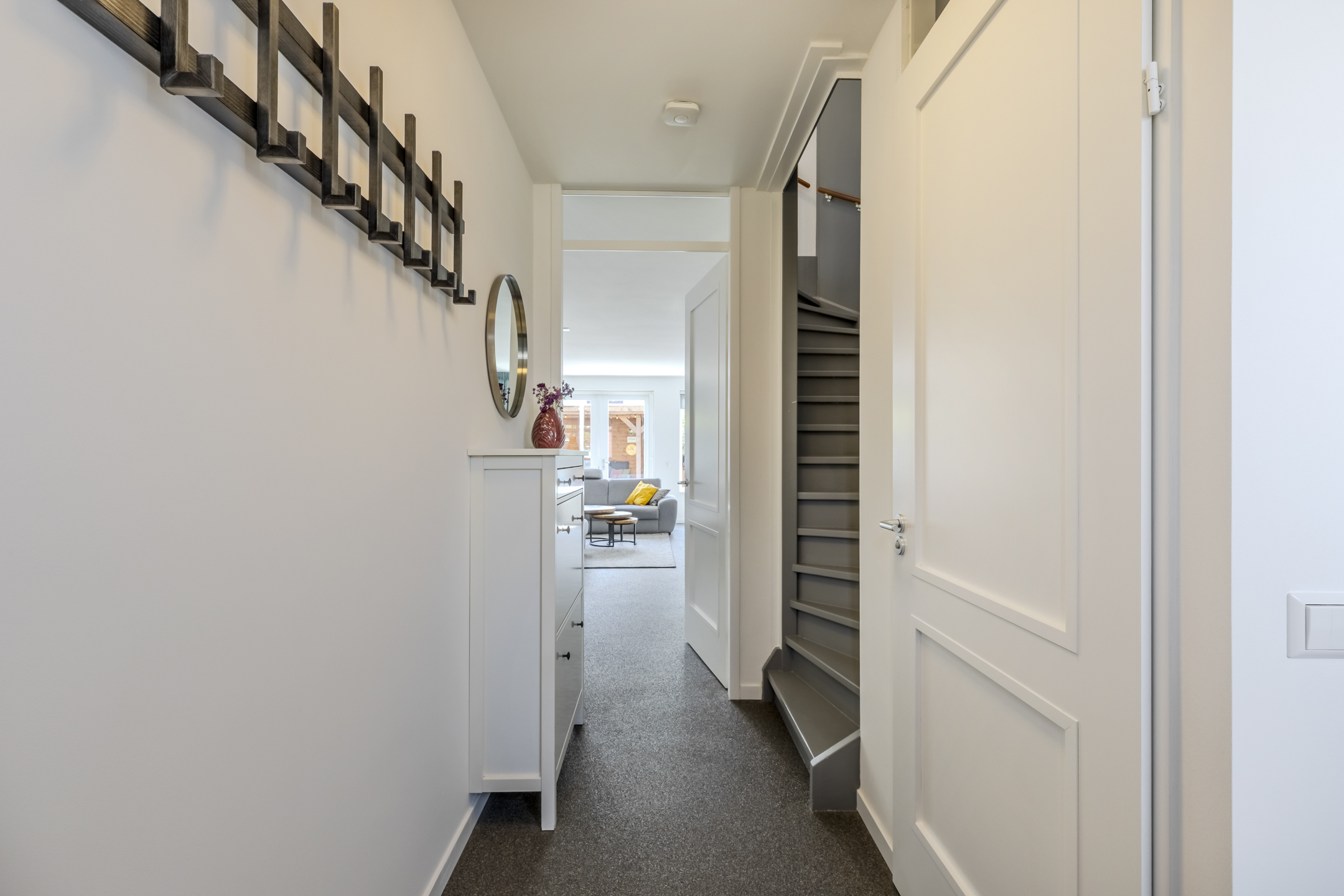 De hal geeft toegang tot de woonkamer en trapopgang naar de eerste verdieping.