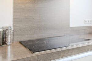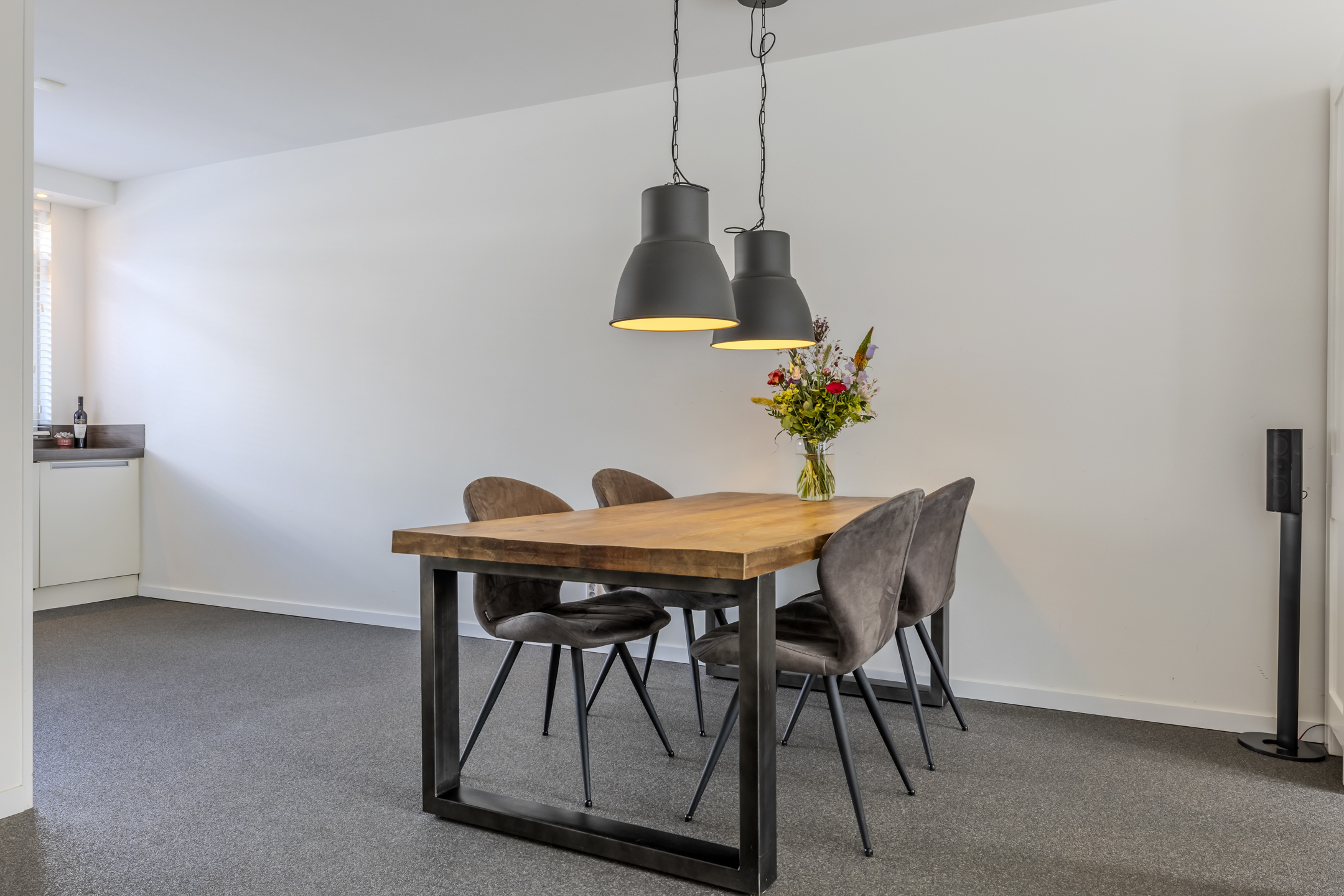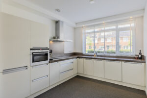 Aan de voorzijde van de woning is de open keuken gelegen. De moderne keukeninrichting in hoekopstelling is voorzien van een inductie kookplaat, afzuigkap, koelkast, diepvries met 3 lades, combi magnetron en een vaatwasser (2021).