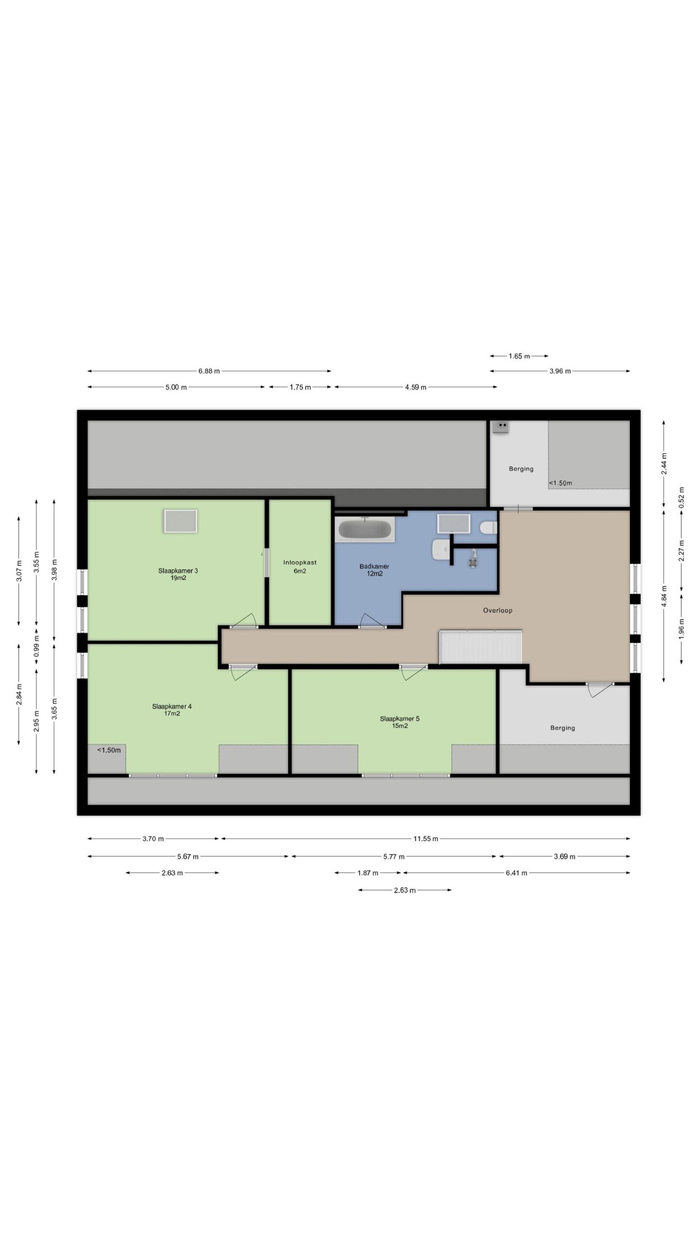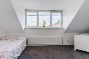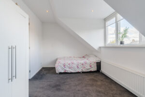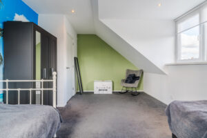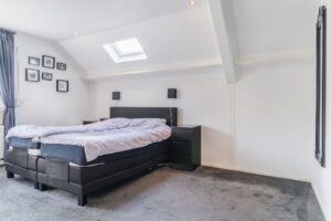 Achterslaapkamer circa 19m² met dakraam en een schuifdeur naar de inloopgarderobe van circa 6m², voorslaapkamer circa 17m² met dakkapel en een voorslaapkamer circa 15m² met dakkapel. Alle slaapkamers zijn voorzien van strak stucwerk wand- en plafondafwerking en inbouwspots.