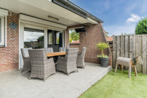 Het royale en diepe perceel biedt een optimaal woongenot en heeft een prachtig vergezicht over groen en bossen. Aan de achterzijde van de woning bevindt zich een ruim overdekt terras.
